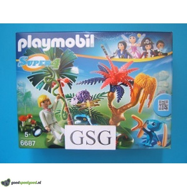 De wetenschapper uit Technopolis doet onderzoek naar de fauna en flora van Lost Island. Hij vlucht in de palmbomen na een aanval van de Velociraptor. De SUPER 4- figuur Alien snelt ter hulp door middel van zijn boemerang. Is geschikt voor de leeftijd vanaf 5 jaar. Zit nog in de ongeopende originele verpakking.