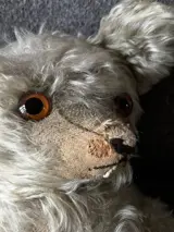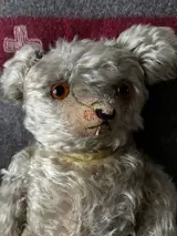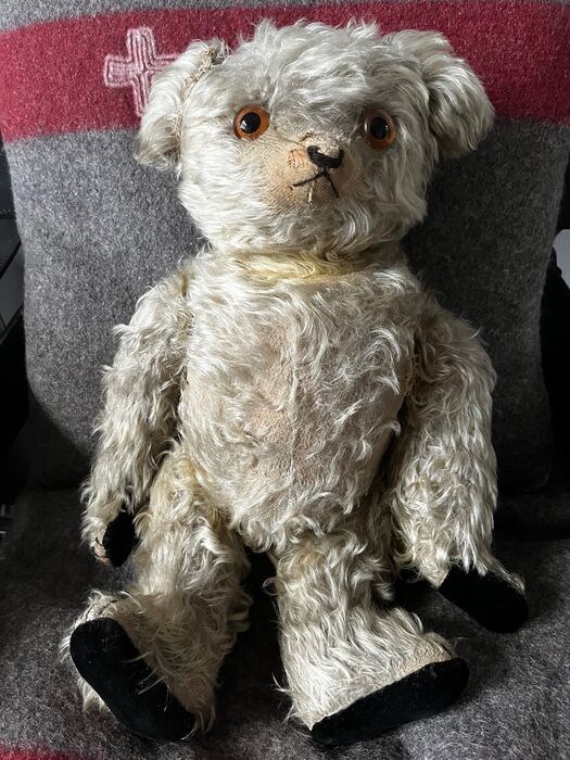 Beer Jopi 1920 jaar Amerika! Zeer zeldzaam met binnenste klokkenspel (door te drukken) Het is bedekt met mohair! Het hoofd kan 360 graden worden gedraaid, net als armen en benen! De zeer oude en charmante beer, zou naar de berenkliniek moeten gaan! De voeten en handpalmen zijn vernieuwd met fluweel !