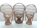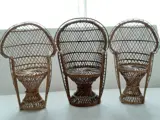 Drie prachtige Vintage handgemaakte Rotan / rieten Pauwenstoelen voor poppen ,beerof als decoratie .