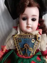 Antiek, begin 1900, kleine pop gemerkt achter de nek en 20 cm hoog.