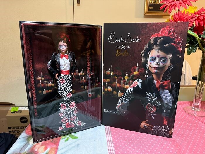 Barbie dia de muertos in samenwerking met de Mexicaanse ontwerper Benito Santos. Barbie uitgebracht in 2022. Gold Label Niet meer dan 20.000 stuks wereldwijd.