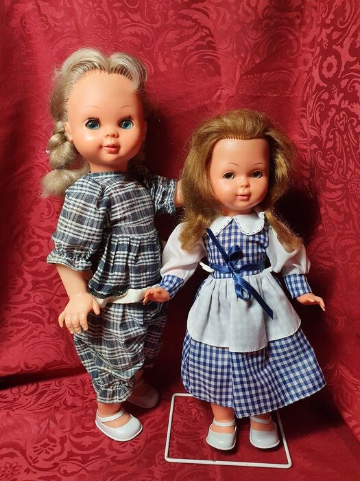 Deze mooie Bella's zijn een aanwinst voor de verzamelaar. De mooie ogen met een diepliggende pupil, zijn het meest opvallend en kenmerkend aan Bella's. Ze dragen elk een mooi vlot jurkje met witte schoentjes. Ook de haren zijn nog heel mooi. De grootste is 49cm en de kleinste is 42cm