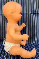 Nanin-pop van Isidro Rico met oud Diana-zegel, 1959, celluloid, 35 cm lang, met wat gebruikssporen door het verstrijken van de tijd, hoewel in algemeen goede staat, wordt geleverd zoals op de foto's.