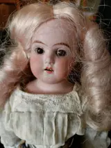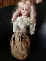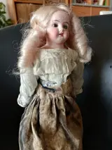 Heel schattige EHK-pop? 6/0 gemaakt in Duitsland. 34cm H. in koekje. in perfecte staat. inclusief display. de rok is gedeeltelijk verkleurd stuurt veilig