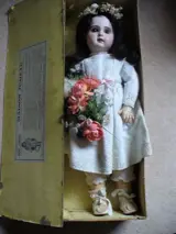 Body gemerkt met Jumeau label, "Jumeau Medaille d'Or" Vernis is op sommige plaatsen afgebladderd (zie foto's) Werkende stemdoos!