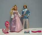 Ken Fairytale prins samen met prinses Rapunzel uit 2005 en draak erbij