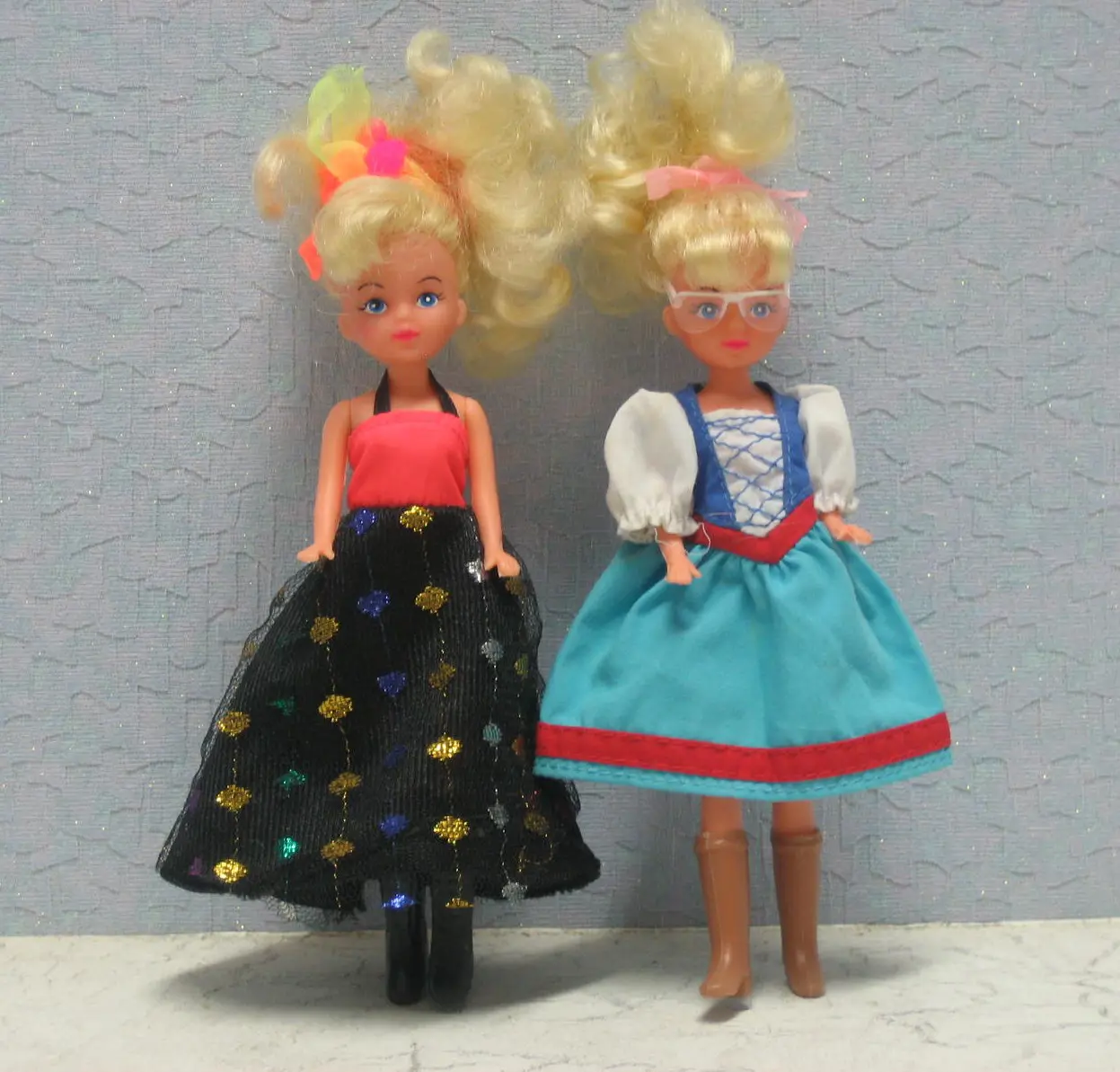 Het blauwe jurkje is van Mattel uit het jaar 2005