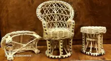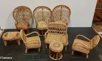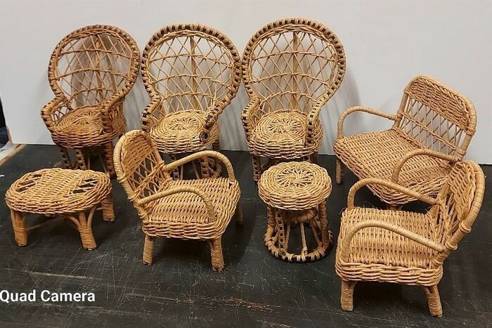 Woonkamer voor poppen, bestaande uit 8 rieten stukken.