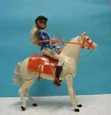 Prachtige Barbie met wimpers op paard die een galop geluid maakt en hinnikt als 1 been naar voren word bewogen.