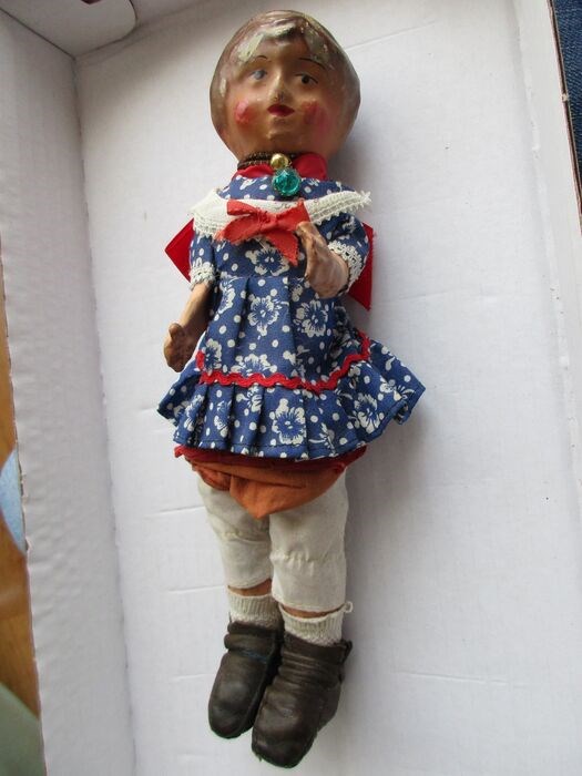 Pop Papier Maché - Armen en benen beweegbaar - Handgeschilderd - Oude geleefde Patina van door de jaren heen - formaat 25 cm hoog - Word goed verpakt en met Tracking verzonden