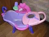 Poppenbad badje met diverse toebehoren - met dit set is de kleine poppenmoeder zeker in haar schik. - Werkt erg leuk als er en broertje of zuje is geboren - stevig materiaal - z.g.a.n. - 11,50