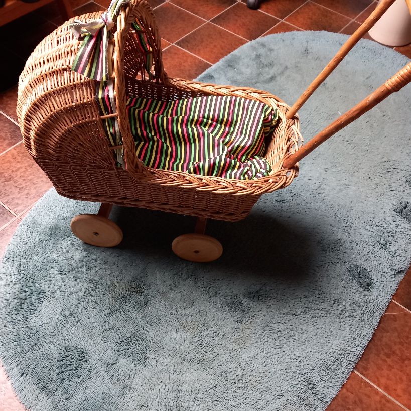 Rieten poppenwagen , voor de kleine poppenmoeder