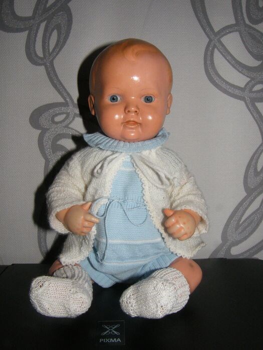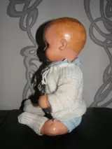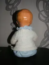 Strampelchen heeft hier en daar wat schaafplekken, de kleur op de handen is wat vervaagd.