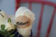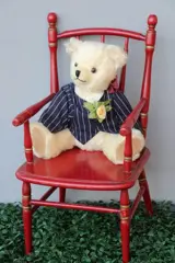 Mooie witte Schuco teddybeer. Gemaakt van mohair met blauw jasje en een strike, Op zijn hand aan de linkerkant is het merk Schuco gedrukt. Leuke teddybeer in redelijk tot goede conditie.
