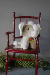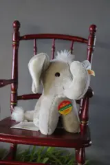 Klein olifantje van de Cosy range. Gemaakt door Steiff. Hoogte circa 15cm, breed circa 13cm. Heeft Steiff knoopje en vaantje als ook het papieren borstetiket en de handleiding.Gemaakt in 2004.
