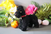 Snobby de poedel, gemaakt in 1953 door Steiff. Afmeting is 14cm hoog en 14cm breed. De benen zijn beweegbaar zo kan hij dus zitten en liggen. Het hoofd van deze Snobby is niet te bewegen. Mooi zwart mohair. Aan het halsbandje zit een klein restje van eht borstlabel. Knopje is in oor aanwezig, vaantje helaas niet.