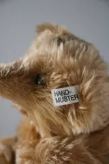 Exstreem zeldzame beer. Dit is de productie beer van Mr. Cinnamon replica 1903 uit 1984 voordat hij geproduceerd wordt. Het productie-voorbeeld waarnaar de beren gemaakt worden en/of van te voren besteld kunnen worden. Dit is de heilige graal van de Steiff beren. Het komt maar heel zelden voor dat er een beer met Steiff knopje en dit soort label wordt aangeboden. Het komt van Steiff.