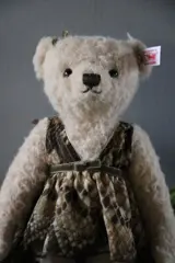 Komt met originele doos en certificaat. Teddybeer Jane heeft Steiff knoopje en Steiff vaantje. Daarnaast ook nog eens papieren handleiding bij de beer.