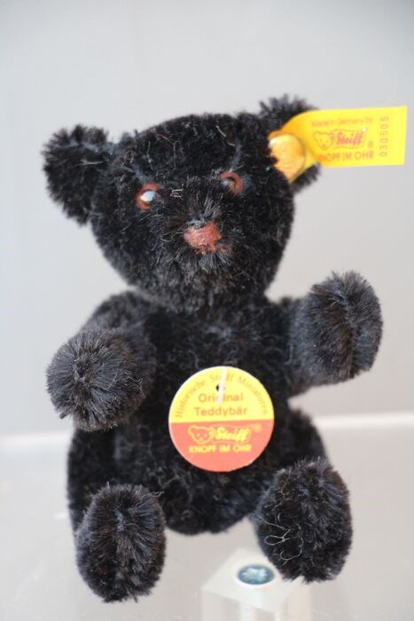Leuk klein beertje van Steiff in de kleur zwart. Het teddybeertje is gemaakt door Steiff in 1992.. Algemeen bekend voor de teddyberen. De teddybeer is in goede conditie en is 10cm groot. Heeft het papieren borsttetiket, het Steiff knoopje en het Steiff vaantje.