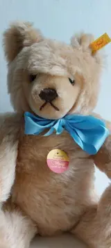 Steiff Vintage original Teddy Bear met blauwe strik. Zo'n 40 cm hoog. Heeft z'n labeltjes nog.