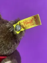 Original Teddybeer van Steiff. Gemaakt in 1984. Hij is 16-17cm hoog. Heeft Steiff knoopje en vaantje. Het beertje is gemaakt van donkerbruin mohair. De conditie is goed.