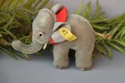 Klein lief olifantje van Steiff. Gemaakt in 1968. Het is 10cm hoog en 14cm breed, inclusief slurf. EAN (Modelnummer) is 0500/10. Het olifantje is in redelijke staat. Het mohair is in goede staat. Daarnaast heeft olifantje de vilten rode kraag nog. Steiff knopje en vaantje zitten in het oor maar zitten in het vilt. Kan dus eruit scheuren of vallen. Dus voorzichtig mee omgaan.