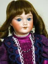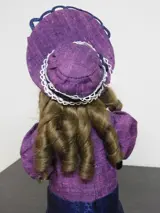 gaatjes in de oren, pruik van natuurlijk haar met lange krullen, gearticuleerd lichaam in hout en compositie,