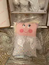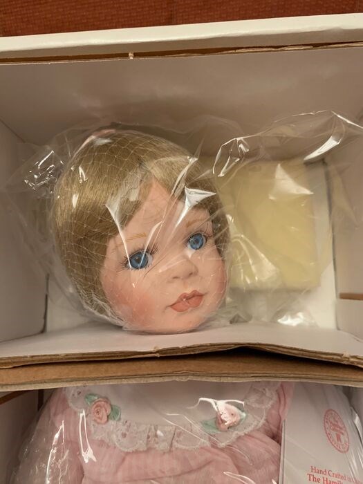 Het kavel bevat: pop met kleding, kussen dat een meisje voorstelt, certificaat van echtheid, folders, doos en originele verpakking.