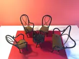 Vijfdelige set gebogen houten meubelen voor het poppenhuis in Thonet-stijl.