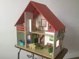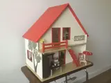 Heel mooi poppenhuis van de Vero-fabriek uit voormalig Oost-Duitsland, in de jaren 70 een vooraanstaand producent van houten poppenhuizen. Dit poppenhuis wordt geleverd inclusief inboedel en bewoners (zie foto’s) in de originele verpakking. Bijzonderheid is, dat het poppenhuis aan de voor- en achterkant open is. Kortom, een vrij zeldzaam stuk speelgoed.