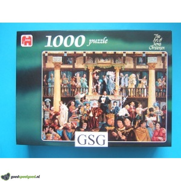 Puzzel van 1000 stukjes met als thema all the world's stage van het merk Jumbo. Deze puzzel is een werk van James Christensen. Dit is een kunstenaar die vooral bezig is met het tekenen van extravagant geklede dwergen en feeën. Zijn werk is in vele collecties terug te vinden, en word uitbundig geprezen voor zijn uitgesproken fantasie en prachtige puzzelplaten.