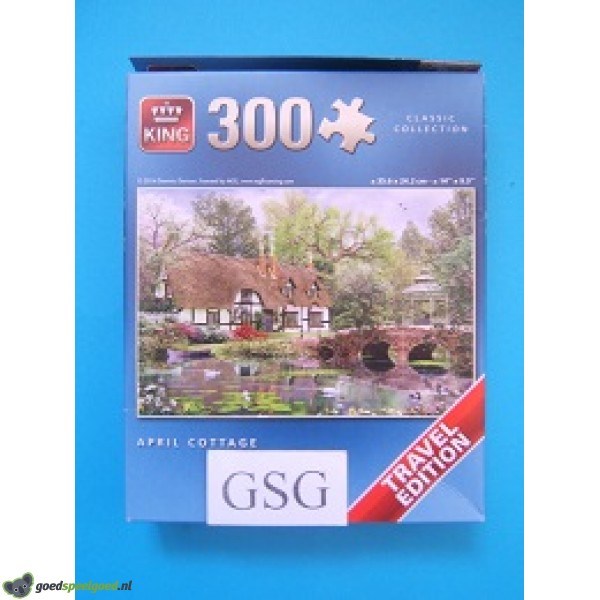 Reispuzzel van 300 stukjes met als thema april cottage van het merk King. Zit nog in de ongeopende originele verpakking.