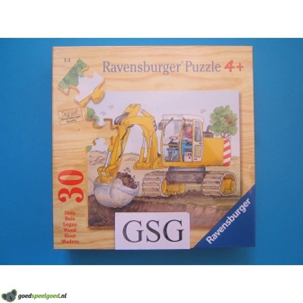 Houten puzzel van 30 stukjes met als thema bouwplaats van het merk Ravensburger. Zit nog in de ongeopende originele verpakking.