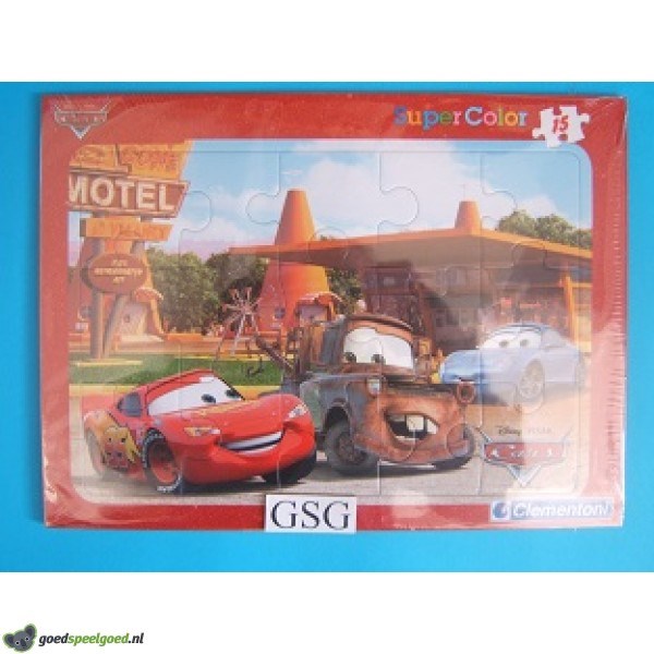 Puzzel van 15 stukjes met als thema Cars van het merk Clementoni. Zit nog in de ongeopende originele verpakking.
