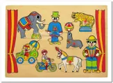Houten knoppuzzel met het thema Circus.