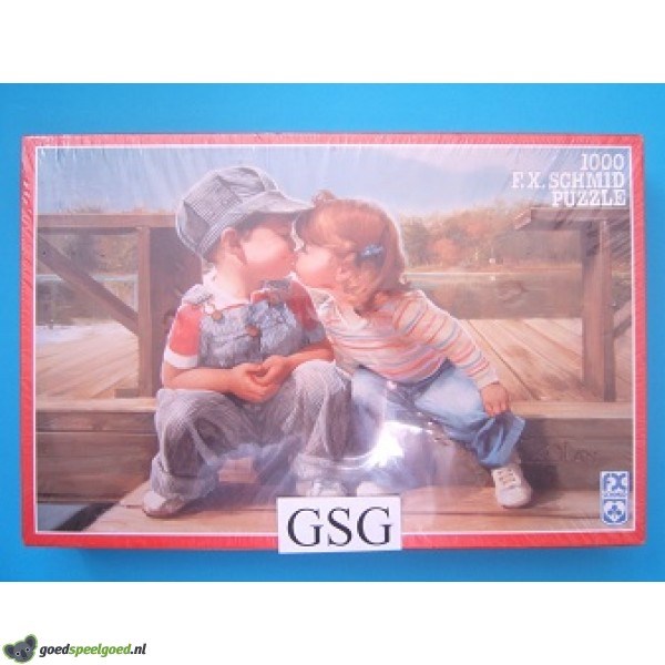 Puzzel van 1000 stukjes met als thema de eerste kus van het merk FX Schmid. Zit nog in de ongeopende originele verpakking.