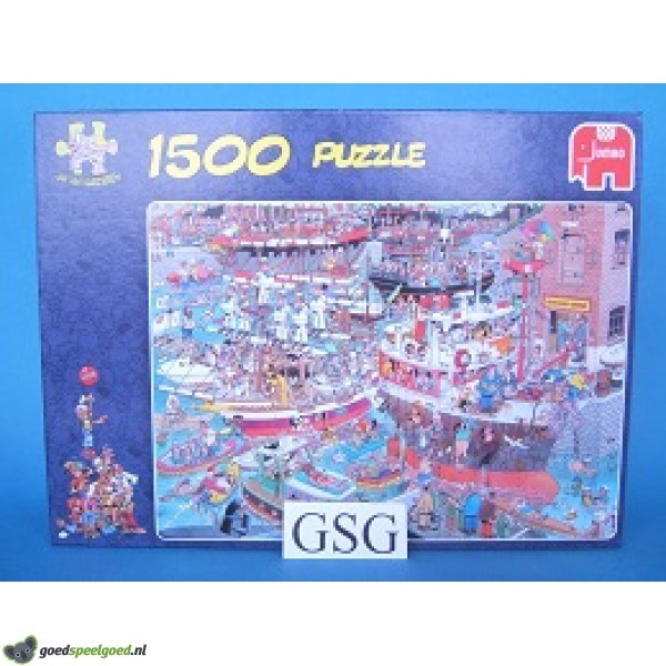 Puzzel van Jan van Haasteren uit 2002 van 1500 stukjes met als thema de haven van het merk Jumbo.