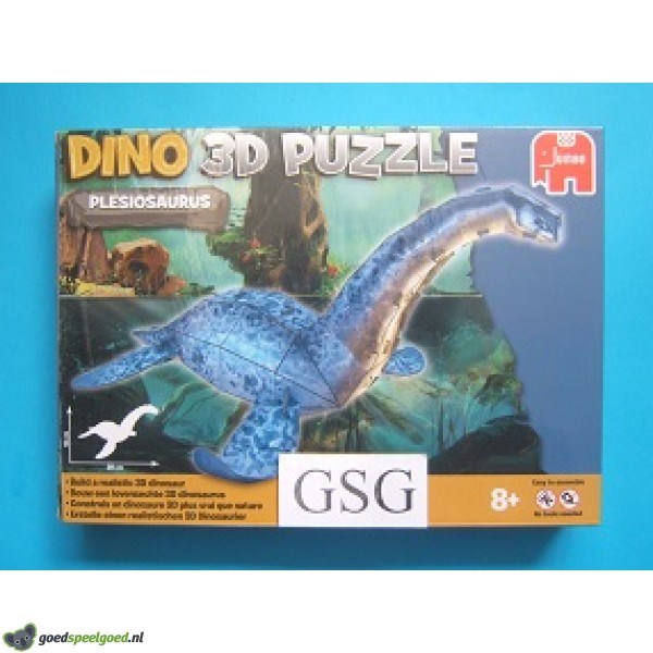 Dino 3D puzzel van 41 stukjes met als thema Plesiosaurus van het merk Jumbo. Kompleet met achtergrond en handleiding. Zit nog in de ongeopende originele verpakking.