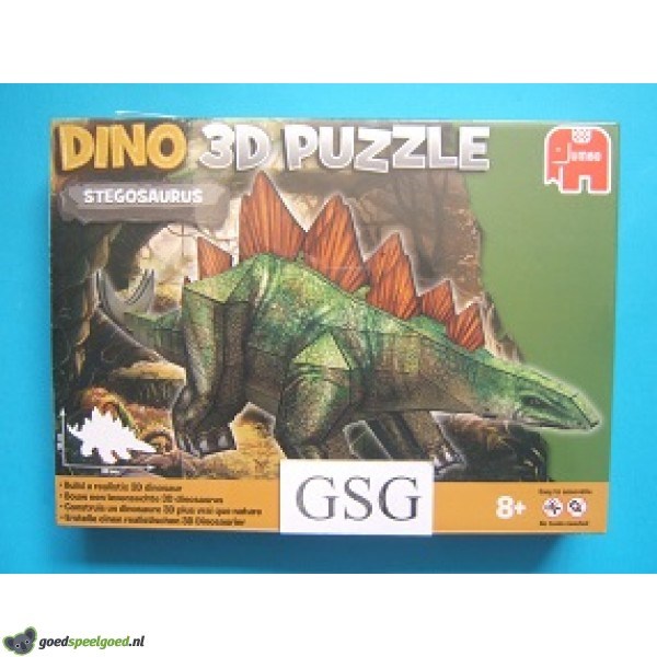Dino 3D puzzel van 49 stukjes met als thema Stegosaurus van het merk Jumbo. Kompleet met achtergrond en handleiding. Zit nog in de ongeopende originele verpakking.