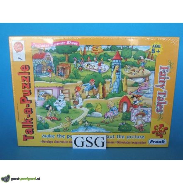 Puzzel van 54 stukjes met als thema fairy tales van het merk Frank. De puzzel verteld iets over de sprookjes die je ziet. Let op het betreft hier een Engelse puzzel. Zit nog in de ongeopende originele verpakking.