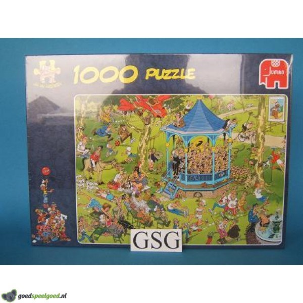 Puzzel van Jan van Haasteren uit 2012 van 1000 stukjes met als thema het muziekpaviljoen van het merk Jumbo. Zit nog in de ongeopende originele verpakking.