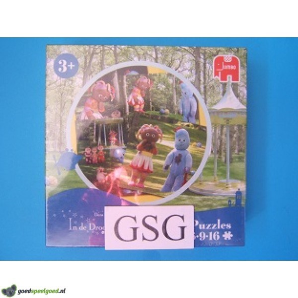 1 puzzel van 4 stukjes, 1 puzzel van 6 stukjes, 1 puzzel van 9 stukjes en 1 puzzel van 16 stukjes met als thema in de Droomtuin van het merk Jumbo. Zit nog in de ongeopende originele verpakking.