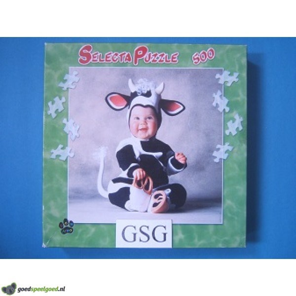 Puzzel van 500 stukjes met als thema koetje boeh van Tom Arma en het merk Selecta. Let op puzzel is in mindere staat.
