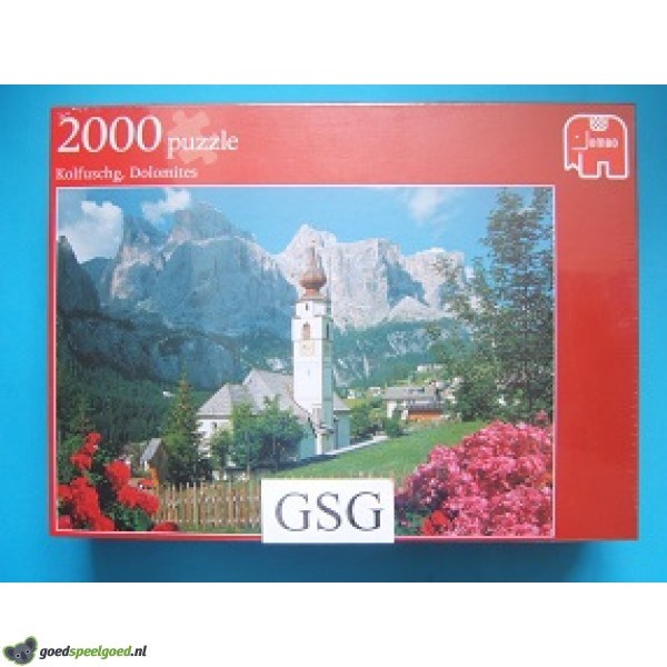 Puzzels van 2000 stukjes met als thema Kolfuschg, Dolomites van het merk Jumbo. Zit nog in de ongeopende originele verpakking.