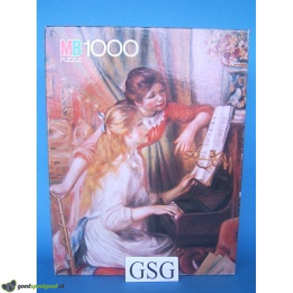 Puzzel van 1000 stukjes met als thema meisjes aan de piano van het merk MB.