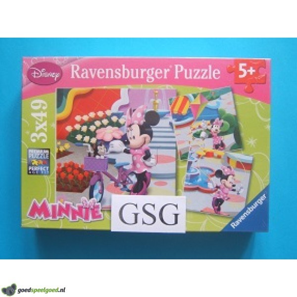 3 puzzels van 49 stukjes met als thema mooie Minnie Mouse van het merk Ravensburger. Zit nog in de ongeopende originele verpakking.