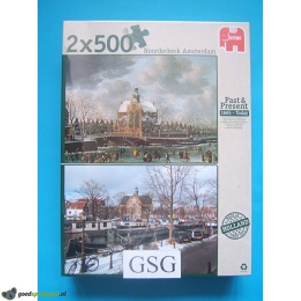 2 puzzels van 500 stukjes in 1 doos met als thema Noorderkerk Amsterdam van het merk Jumbo. Deze puzzel komt uit de collectie van past & present en laat de Noorderkerk in Amsterdam zien in 1665 en vandaag. Zit nog in de ongeopende originele verpakking.
