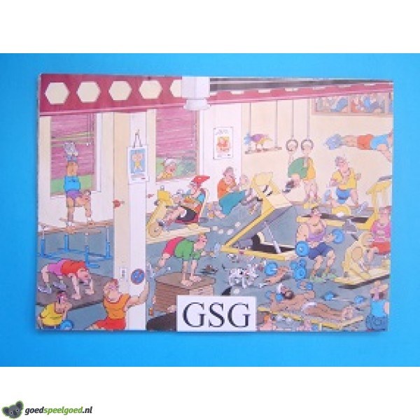 Jan van Haasteren poster met als thema in het fitnesscentrum. De poster heeft de afmeting van 68 cm x 49 cm.