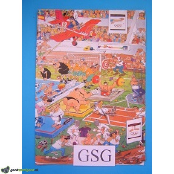 Jan van Haasteren poster met als thema sportdag. De poster heeft de afmeting van 43 cm x 30 cm.