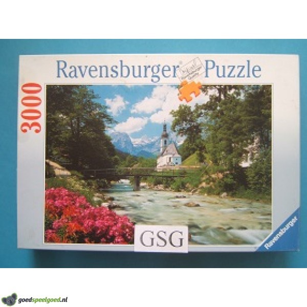 Puzzel van 3000 stukjes met als thema Ramsau against the Alps van het merk Ravensburger.